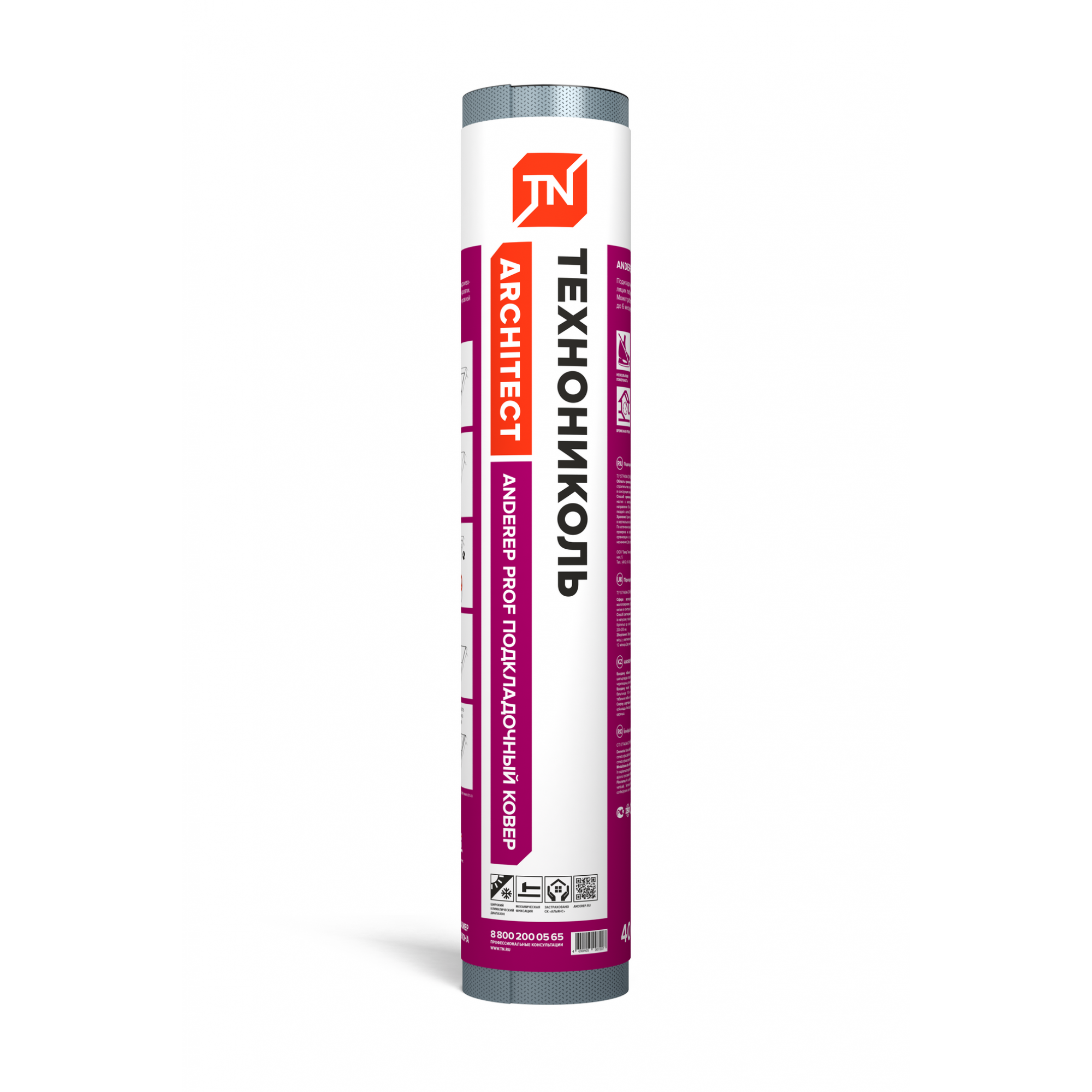 Подкладочный ковер ANDEREP PROF — легкий и прочный подкладочный материал с основой из полиэфира. Используется под любой тип кровельного покрытия, а также может служить временной кровлей при перерывах в работе до 6 месяцев.