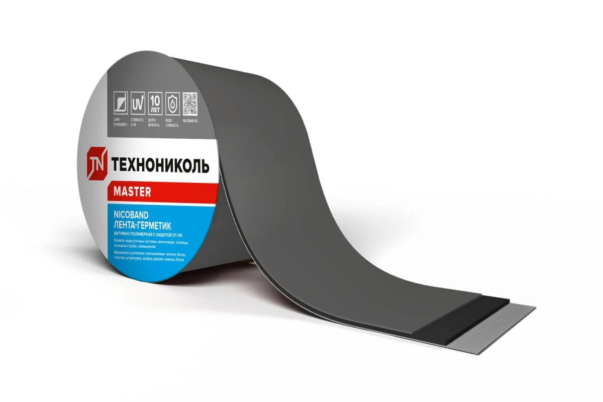 Такая лента помогает надежно произвести герметизацию стыков и образовавшихся трещин. NICOBAND применяют при выполнении изоляции примыканий, в ремонте крыш и водосточных систем.